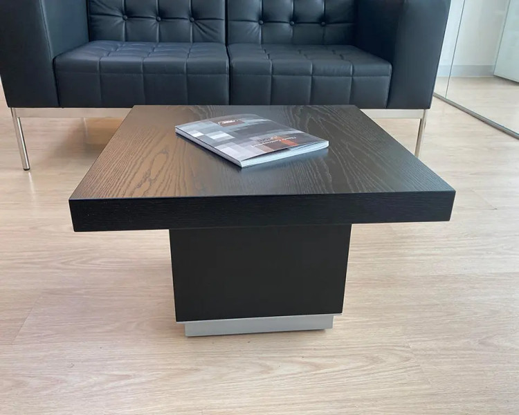 میز جلو مبلی مدل تایکو با طراحی مکعبی و ظاهری رسمی، مناسب فضاهای مدیریتی و لابیهای شیک و مینیمال میباشد. صفحهی میز از MDF با روکش چوب مشکی با طرح طبیعی ساخته شده و پایه مرکزی آن با رنگ بدنه هماهنگ بوده و دارای استحکام بالا است. استفاده از پایهی فلزی در قسمت زیرین باعث تعادل بهتر و افزایش دوام محصول شده است. این میز با ترکیب خطوط ساده و رنگ تیره، حس جدیت و وقار را به فضای شما اضافه میکند.