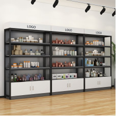 استند فروشگاهی مدل لایتاسکین با طراحی مدرن و ساختار مقاوم، گزینهای حرفهای برای نمایش و عرضهی لوازم آرایشی، بهداشتی و مراقبتی است. این استند شامل سه بخش مجزا با قفسههای قابل تنظیم و نورپردازی سقفی میباشد که دسترسی آسان مشتریان و چیدمان مرتب محصولات را فراهم میکند. قسمت بالایی برای نصب لوگو برند طراحی شده و کمدهای پایینی فضای ذخیرهسازی مناسبی برای انبار کالا یا اقلام اضافی فراهم میکنند. ترکیب رنگ مشکی و سفید این استند با هر دکوراسیونی هماهنگ است و جلوهای شیک به فروشگاه میبخشد.