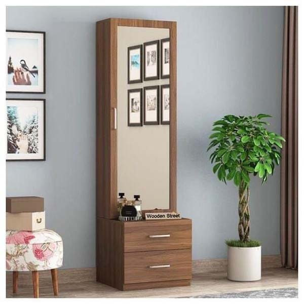 دراور آینهدار «رویال لُوک» یک ترکیب هوشمند از کمد جانبی باریک، آینه قدی و دو کشوی جادار است که با روکش طرح گردوی طبیعی (Walnut) جلوهای گرم و مدرن به اتاق خواب یا ورودی منزل میبخشد.